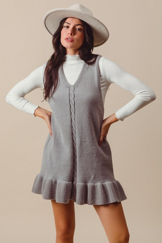 Bring effortless style to your wardrobe with the Sleeveless V Neck Ruffle Hem Rib Knit Dress. This figure-flattering dress features a deep V-neckline and a soft, ribbed knit fabric that hugs your curves comfortably while offering a stretchy, breathable fit. The playful ruffle hem adds a touch of movement and femininity, making it perfect for casual outings or more dressed-up occasions. Its sleeveless design and versatile silhouette make it easy to layer or wear on its own, offering endless styling possibilities.